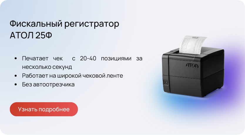 Дальше надо оценить пиковые нагрузки. Если рассчитывать на низкие и отсутствие очередей, то нужно сразу задуматься, стоит ли вообще открывать магазин. Поэтому будем исходить из высокого трафика. Для него оптимальный вариант — АТОЛ 27Ф. Но и другие кассы этого сегмента не спасуют: АТОЛ 22 v2 Ф или АТОЛ 25Ф, тот же ШТРИХ М‑01Ф, а для самых экономных — «Вики Принт 80 Плюс Ф».